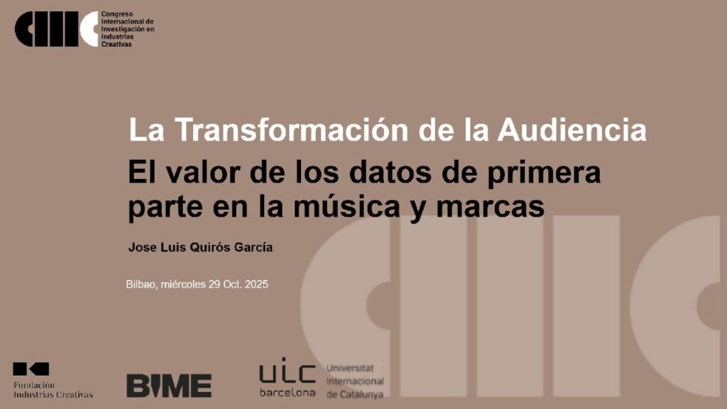 Nuestra intervención, “La Transformación del Modelo de Audiencias y el Valor de los Datos de Primera Parte en Música y Marcas”, mostrará cómo el sector musical está viviendo una auténtica revolución: